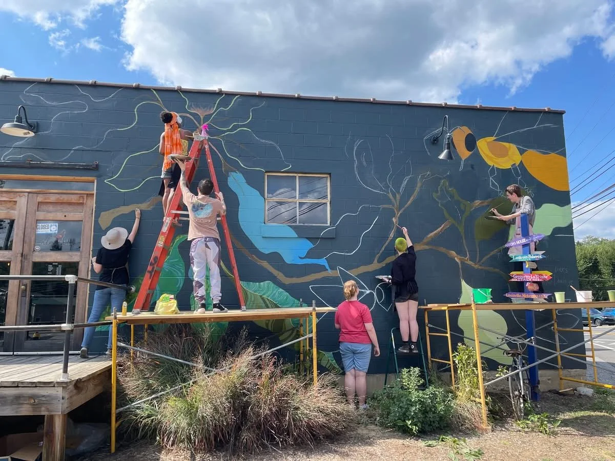 Another great experience with the Shepherd University painters helping to make the Gateway Mural located on the Alma Bea restaurant in Shepherdstown, WV.